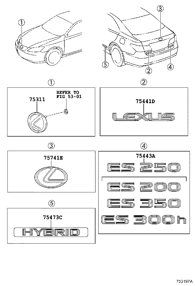 Эмблемы LEXUS ES2##/350/300H, 2015/07 - 9999/99, 2 литра, 16 клапанов, DOHC, EFI, седан, автомат, АКПП, 6 скоростей