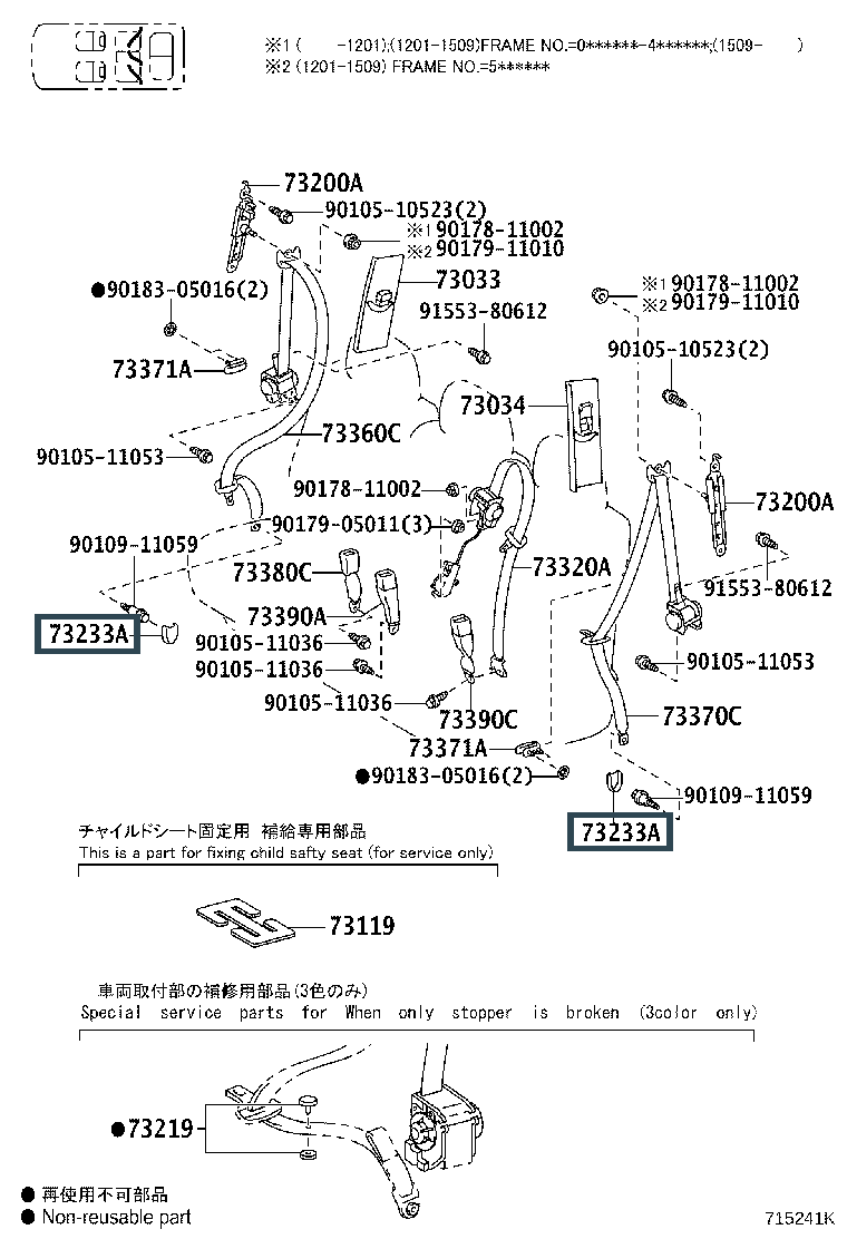 73233-60020-A0, COVER, LAP BELT OUTER ANCHOR, REAR NO.2 SEAT