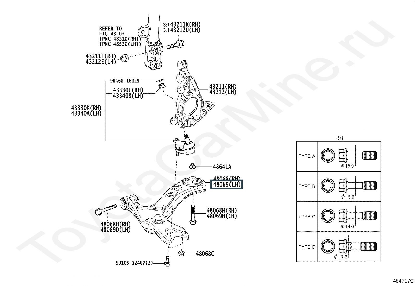 Название по каталогу: ARM SUB-ASSY, FRONT SUSPENSION, LOWER NO.1 LH